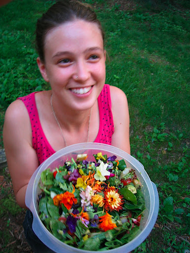 We also made the most delicious salad with lettuce, spinach, avocados, raw cheddar cheese, cherry tomatoes, onions, edible flowers, and blackberries.